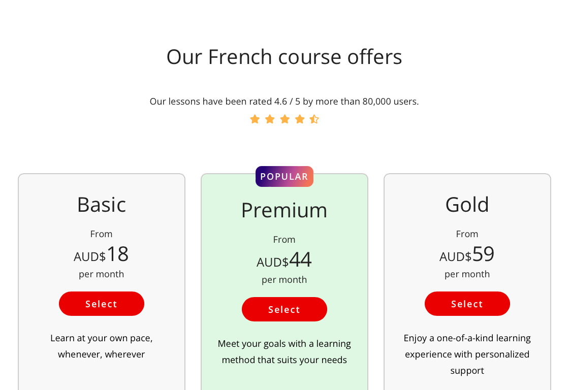 You'll receive a selection of exercises, texts, dialogues, and mini-lessons in French. These include fun stories and historical notes that match your level. And because great things should never come alone, you can try it for FREE for up to one month.
